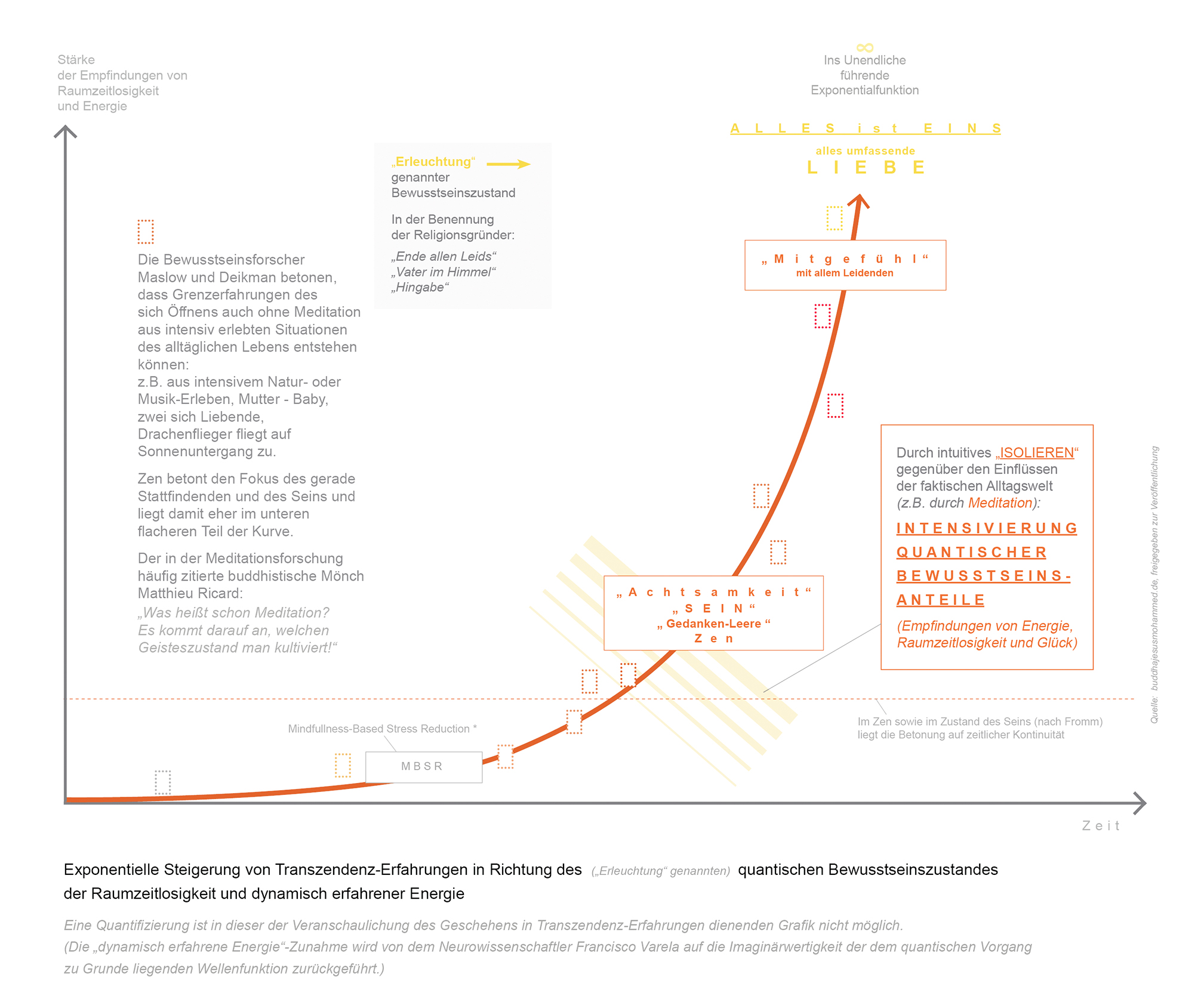 Alltag bewältigenden („Normal“-) Bewusstsein entstehen und kann sich exponentiell mehr und mehr steigern bis hin zur ab einem bestimmten Punkt als raumzeitlos und als Verbindung mit dem unteilbaren Weltganzen erlebten tiefen Transzendenz-Erfahrung: